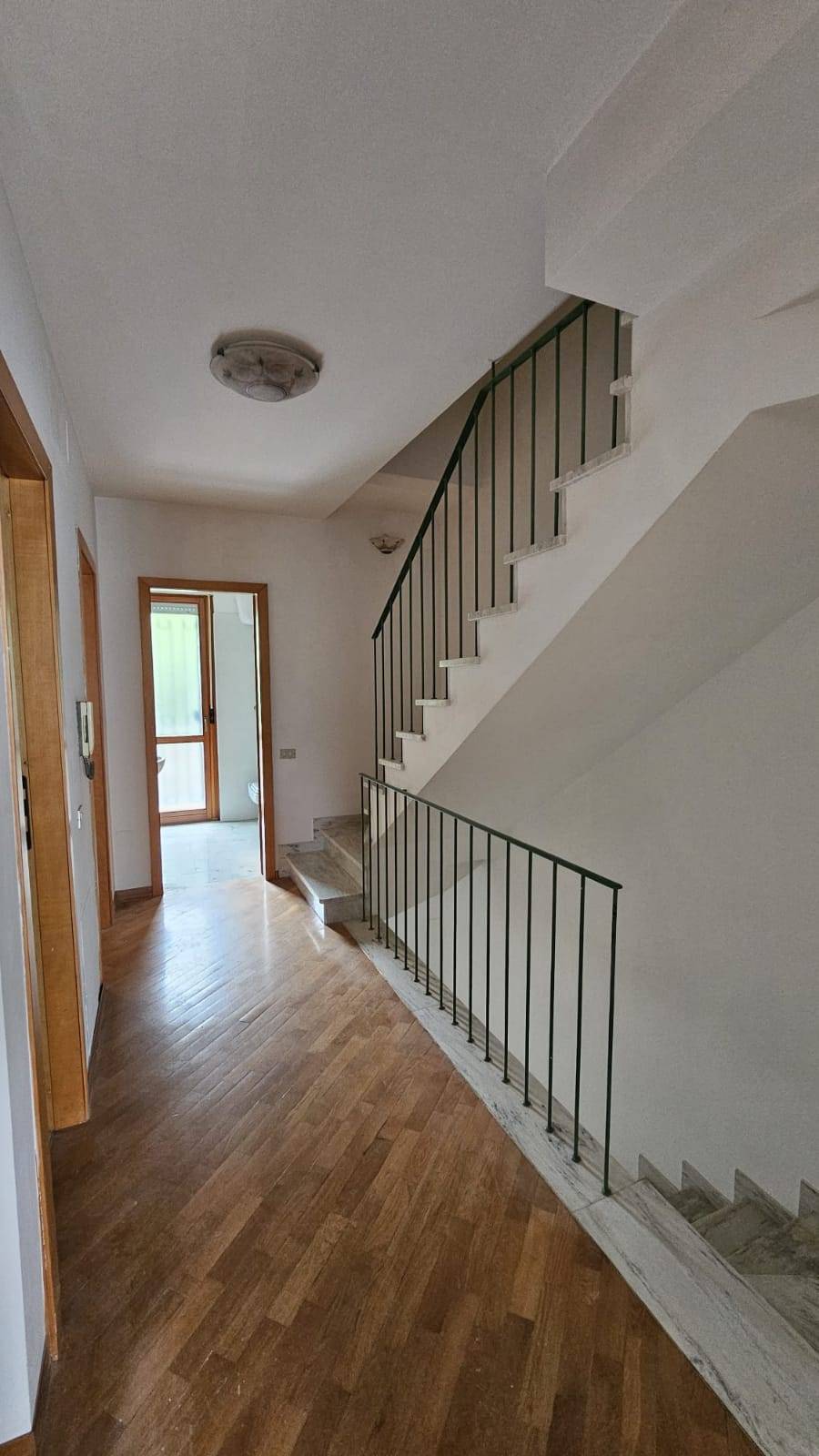 Teramo Via Bafile in zona tranquilla e soleggiata, si vende villa a schiera disposta su quattro livelli così suddivisi:- primo livello box auto, ingresso principale con graziosa taverna con camino e cucina in muratura- secondo livello zona giorno con ampio salone, cucina abitabile, bagno e giardino privato con tettoia in legno, con accesso dalla cucina- terzo livello zona notte con tre camere, due bagni e balconi- quarto livello ampio sottotetto ottimo per studio o camera ospitiL'immobile si presenta in buone condizioni, con ottime finiture, parquet nella zona notte.No spese condominiali.
